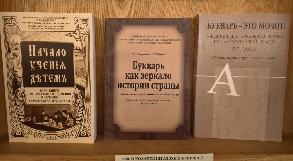 А современный период истории библиотеки раскрывается коллекцией книг, выпущенных за три последние года в Ушинке, среди которых особое место занимают: второй том Э.Д. Днепрова «Российское законодательство об образовании XIX — начала XX века: сборник документов», «Каталог-путеводитель по фонду редких книг», «Нормативно-правовые акты по вопросам народного образования в СССР в период Великой Отечественной войны» и документальный сборник публикаций в 3-х томах «Библиотеки и библиотечное дело на страницах центральных и московских газет (1924—1929)», времени основания Библиотеки им. К.Д. Ушинского.