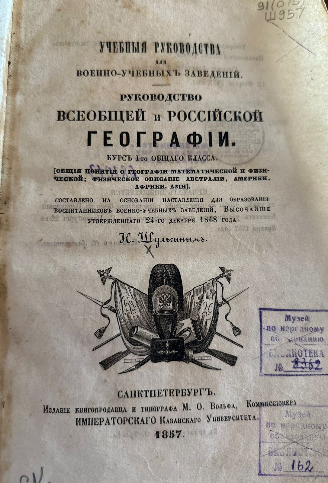 На выставке представлены учебные руководства для образования воспитанников учебно-военных заведений XIX века, дающие представление о «наборе» предметов, изучаемых в военных училищах будущими офицерами того времени: военная, физическая и математическая география, космография, ботаника, математика, алгебра, тригонометрия, правила русского правописания, иностранные языки. Среди специальных дисциплин – фортификация и военная съемка.
