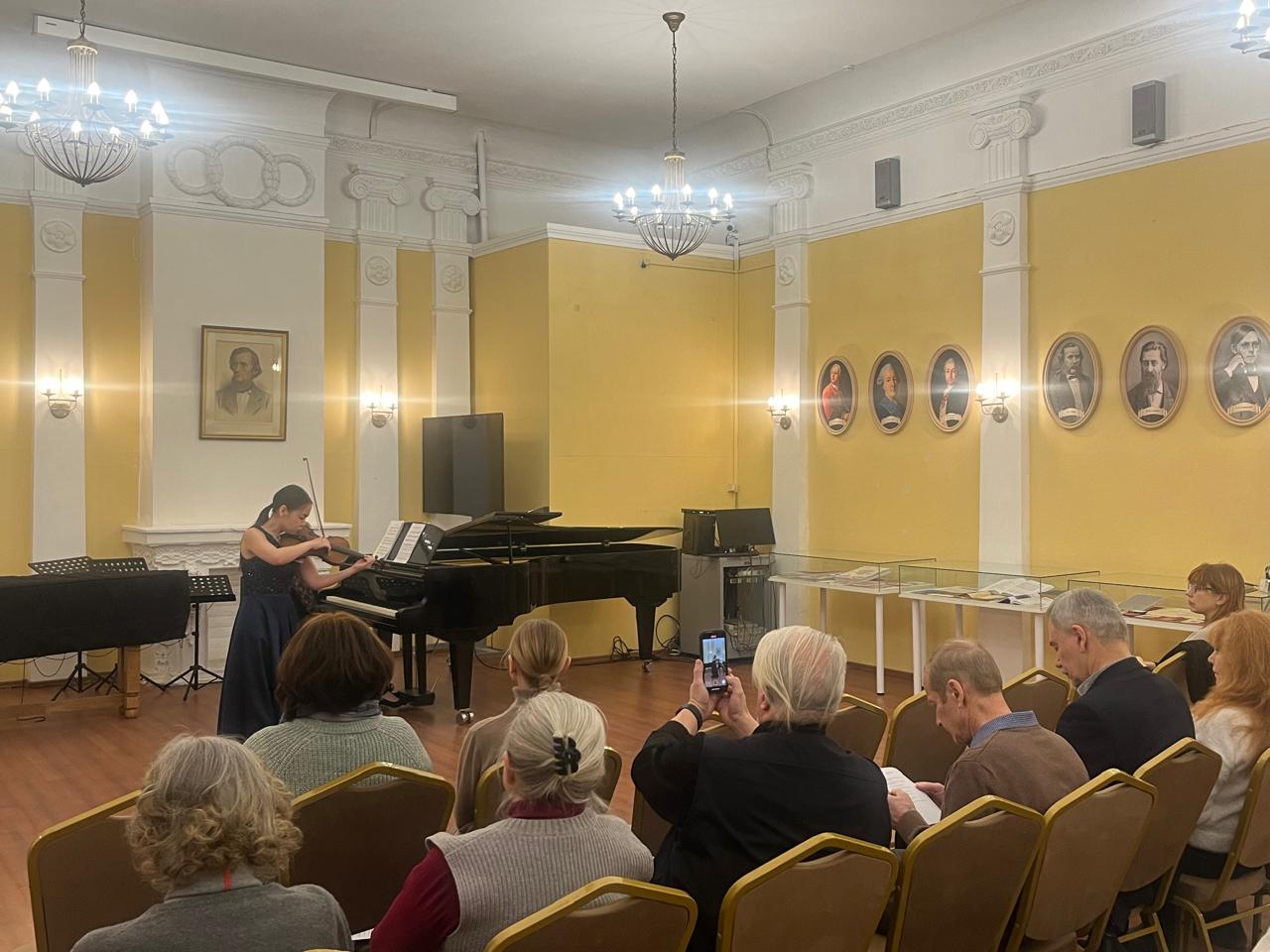 П. Чайковского, С. Рахманинова, Л.ван Бетховена, Г. Венявского, Э. Изаи, Б. Бартока, Й. Сук, М. Равеля, К. Дебюсси, К. Сен-Санса, П.де Сарасате, Н. Паганини