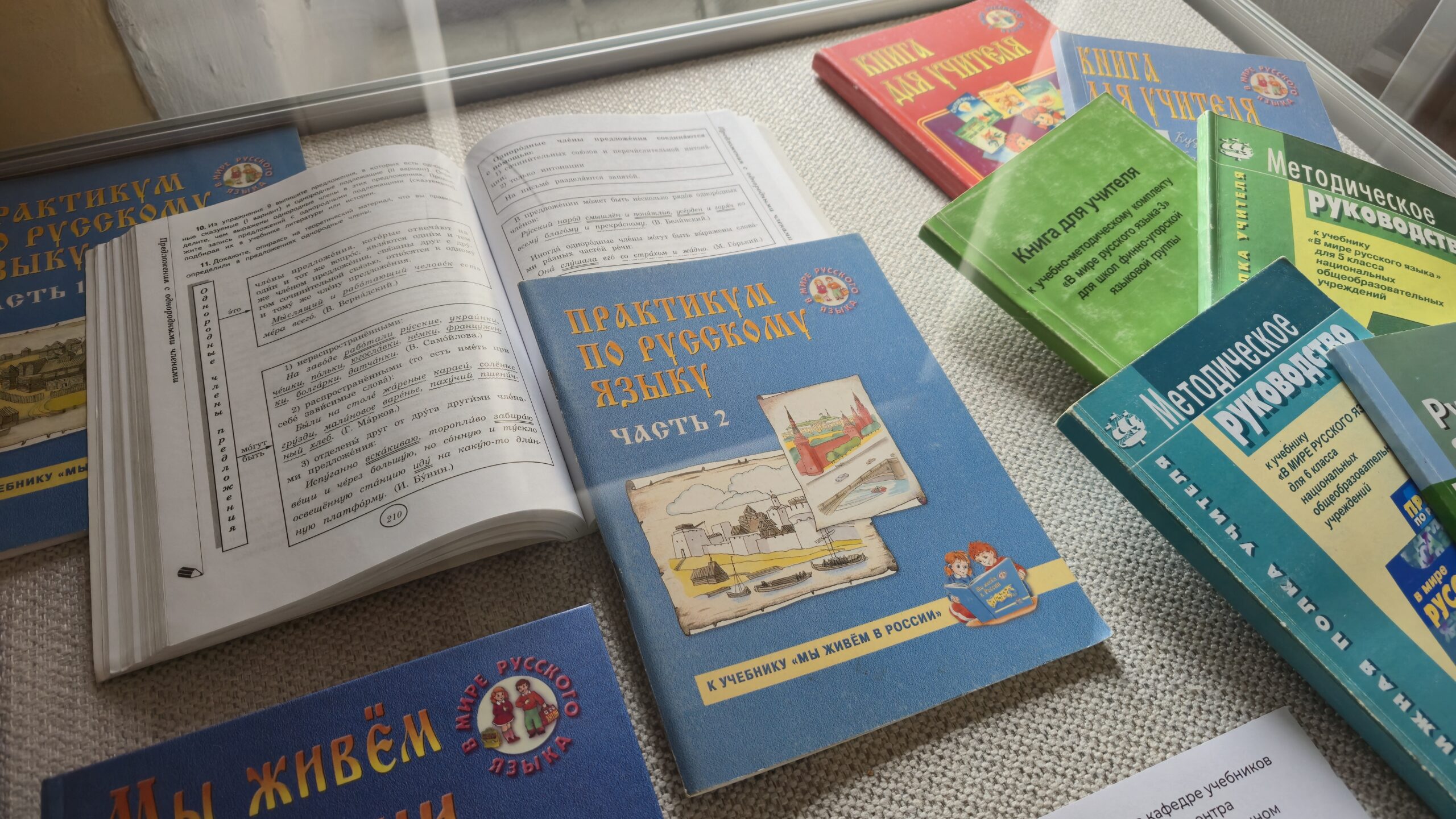 На выставке представлены монографии, методические разработки, учебники и книги для учителя, созданные