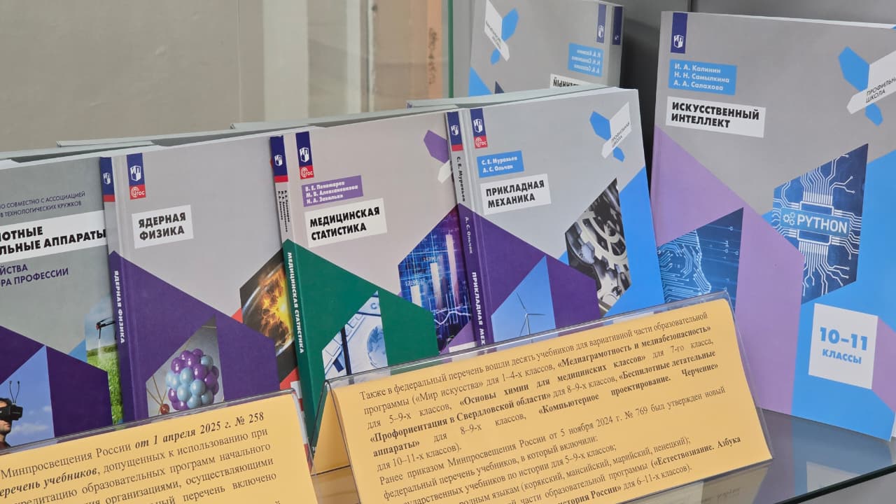 Также в федеральный перечень вошли десять учебников для вариативной части образовательной программы («Мир искусства» для 1–4-х классов, «Медиаграмотность и медиабезопасность» для 5–9-х классов, «Основы химии для медицинских классов» для 7-го класса, «Профориентация в Свердловской области» для 8–9-х классов, «Беспилотные летательные аппараты» для 8–9-х классов, «Компьютерное проектирование. Черчение» для 10–11-х классов).